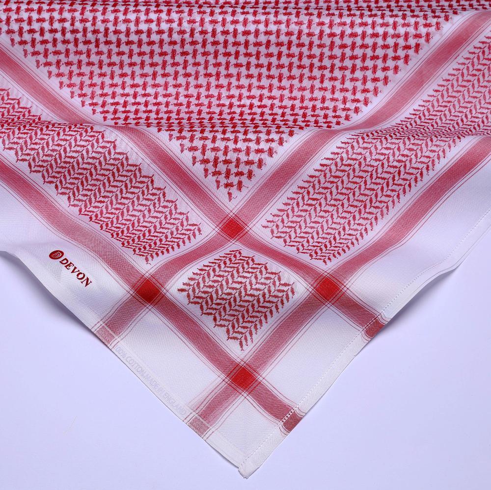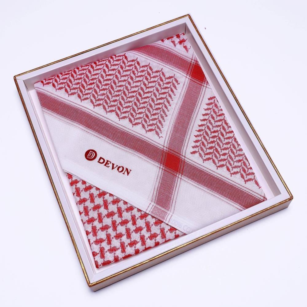 شماغ احمر فاخر من ماركة ديفون DEVON، ديفون شماغ يجمع بين الأصالة والأناقة تم تصميمه بمعايير أوروبية في صناعة الشماغ الأصلي والذي يمنحك مظهراً انيقاً ومصنوعة من خيوط ناعمة ودقيقة