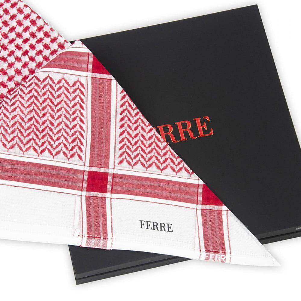 - شماغ باللون الأحمر الزاهي من ماركة فيري المشهورة في اوربا يضيف على إطلالتك رقي و فخامة.
